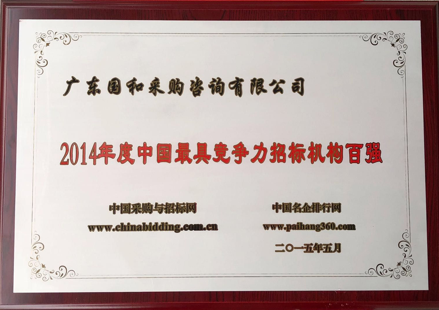 2014年度中國最具競爭力招標(biāo)機構(gòu)百強